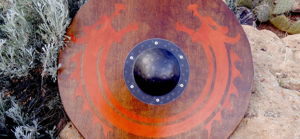 WYRD WARES, our traveling festival shop, featuring Crafts of Myth and Lore, such as hand-crafted shields, swords, hammers, and staffs.